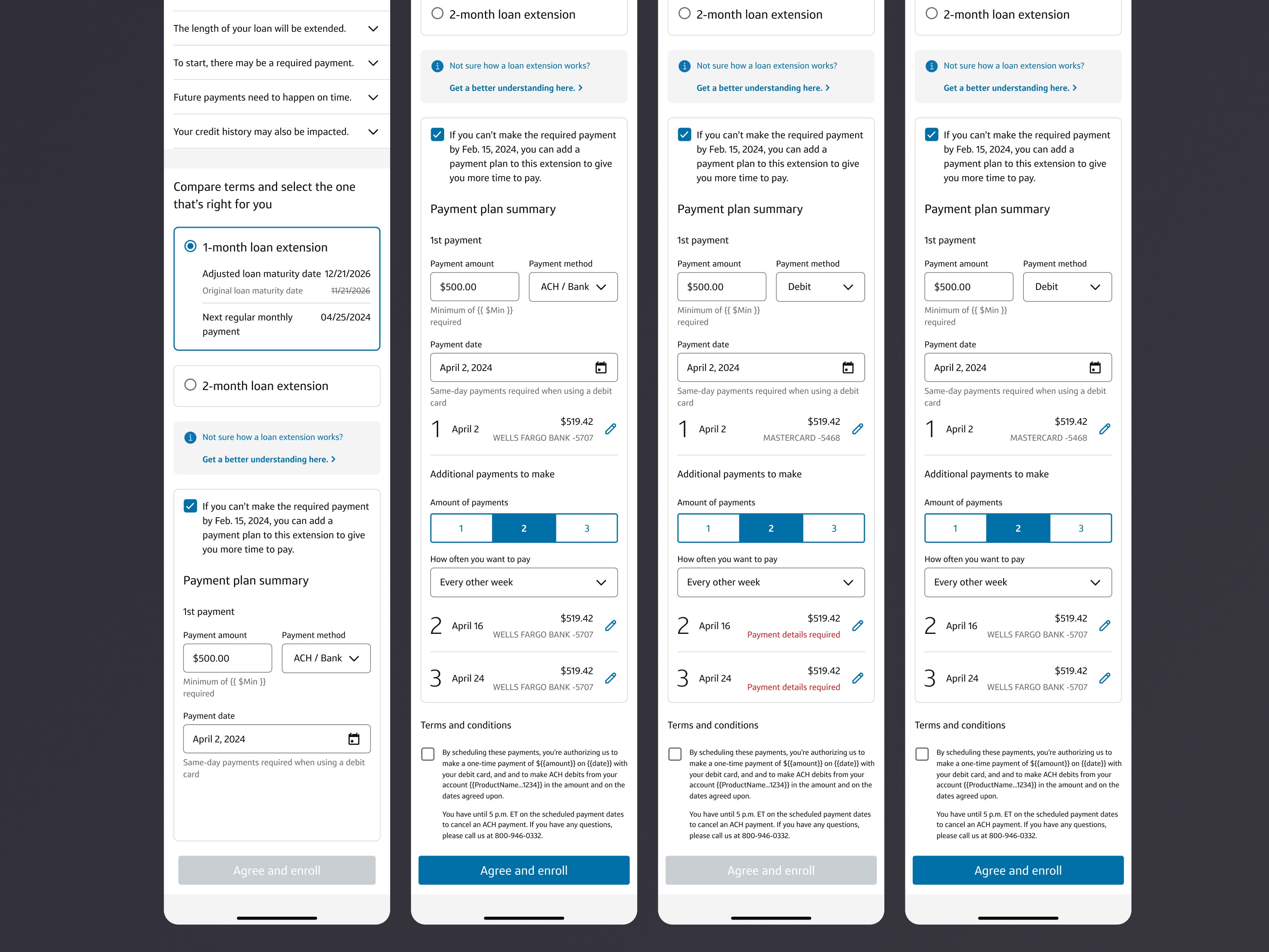 I designed a digital presentment experience that followed the Solution Finder questionnaire. The flow provided users with tailored repayment options, ensuring compliance with policies and credit rules. The design was built for scalability, allowing new products and features to be added seamlessly. Collaboration with governance, content strategy, legal, compliance, and engineering ensured alignment across all fronts. The solution reduced dependency on agent calls and facilitated digital resolutions, aligning with business goals.